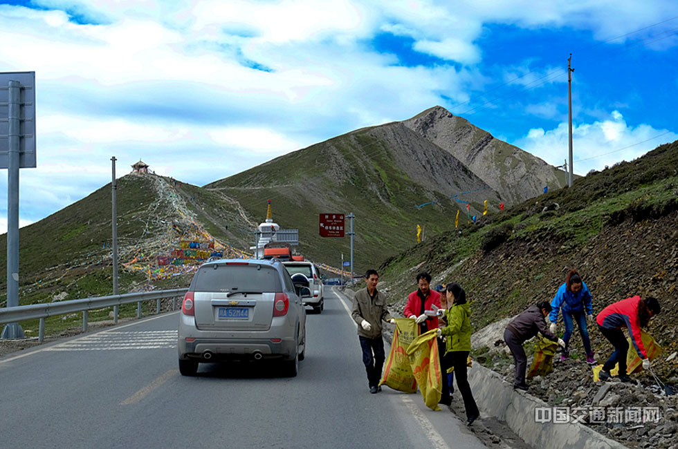 为了最美中国路318国道的整洁,康定城的人们经常上山清理路边的垃圾