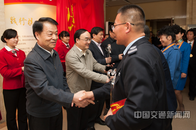 杨传堂部长与2013年感动交通十大年度人物亲切交谈。