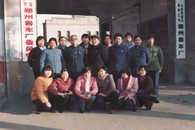 上世纪80年代,郑州客车厂门前,干部职工们合影留念。