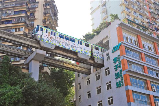 重庆轨道交通2号线李子坝车站是国内第一座与商住楼共建共存的跨座式单轨高架车站,于2004年3月建成。该站位于嘉陵江畔的李子坝正街39号商住楼6—8层,因其空中列车穿楼而过的场景成为蜚声中外的“网红”车站。