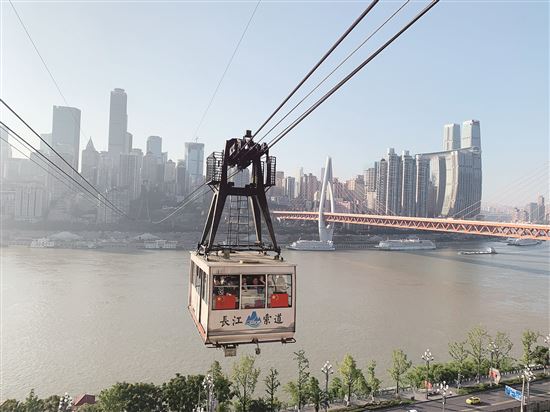为打通长江天堑,跨江索道被引入了公共交通体系。长江索道是重庆第二条跨江索道(第一条为嘉陵江索道(已拆除)),已经运行30年,被誉为“万里长江第一条空中走廊”和“山城空中公共汽车”。长江索道是中国自行设计制造的大型跨江客运索道,全长1166米,连通重庆的渝中区和南岸区,往返于渝中区的新华路和南岸区的上新街,运行速度6米/秒,运行时间约4分钟,日客运量约1.05万人次。2010年12月15日,长江索道被重庆市政府确定为市级文物保护单位,2018年2月6日被批准为国家4A级旅游景区。虽然长江索道已成为“超级网红”,其仍继续履行公共交通职能。