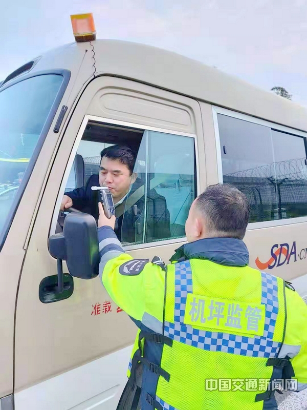 春运期间,重庆江北机场预计起降航班3.86万架次,迎送旅客590万人次。重庆机场集团工作人员加强机坪纠违抽查,严查酒驾行为,保障机场运行安全。特约记者 赵小雪 文 通讯员 黄秋嘉 图