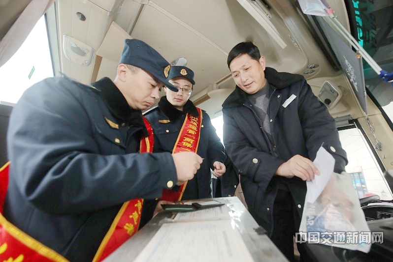 江苏省扬州市运管部门开展驻站人员春运安全检查,督促车站严格落实“三不进站、六不出站”工作要求,确保平安春运。驻江苏首席记者 施科 文 通讯员 戚华琴 图