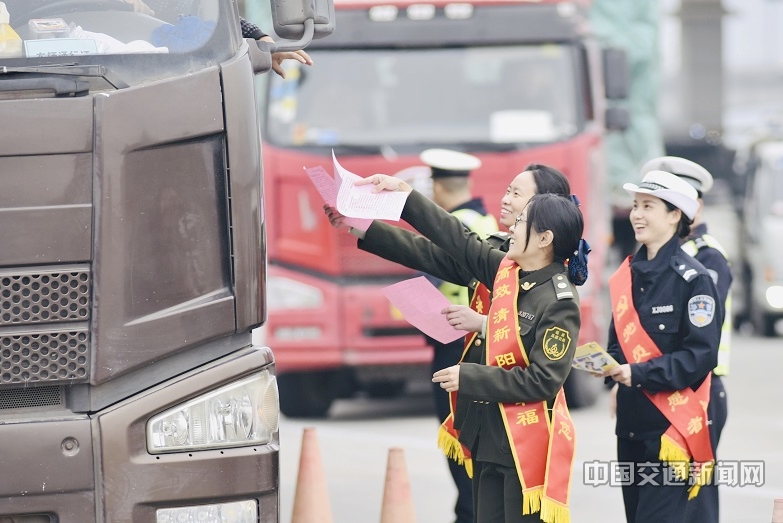 近日,福建省福州高速公路荆溪收费站联合交警部门开展春运服务工作,向货车驾驶员分发高速公路入口称重检测宣传单,广泛宣传高速公路收费改革政策。记者 池舒婕 文 通讯员 程万燊 图