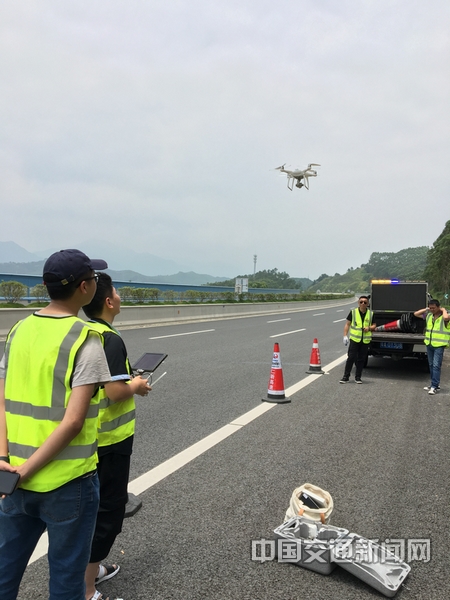 工作人员利用无人机监控区域路网情况。 记者 林楚忠 摄