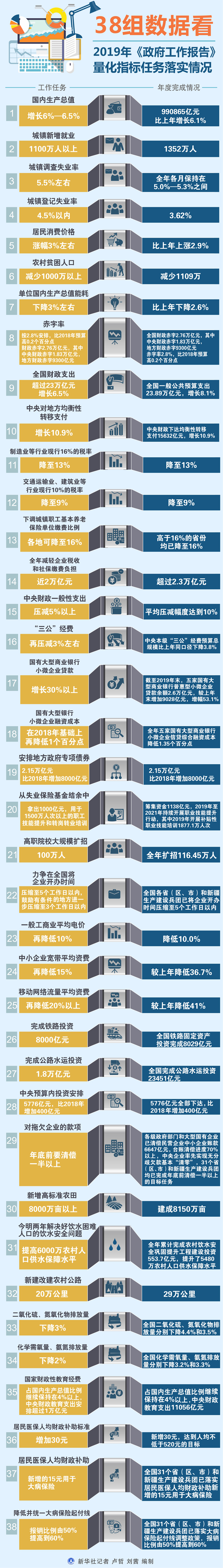 全国两会召开在即,国务院19日对外公布2019年《政府工作报告》量化指标任务落实情况表,38项指标任务均已完成。
