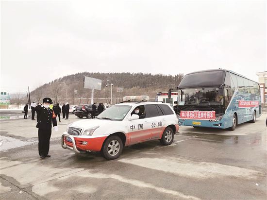 黑龙江交投鸡西分公司工作人员护送返岗农民工专车。 李晓东 摄