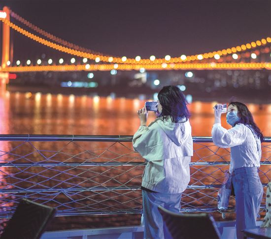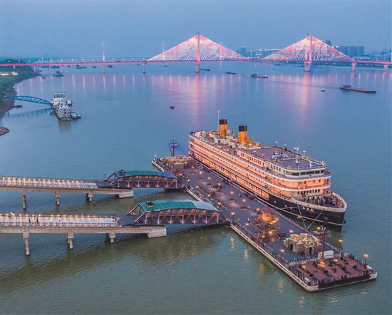 在码头停靠的“知音号”游轮,犹如两江四岸美景中的一颗璀璨明珠。