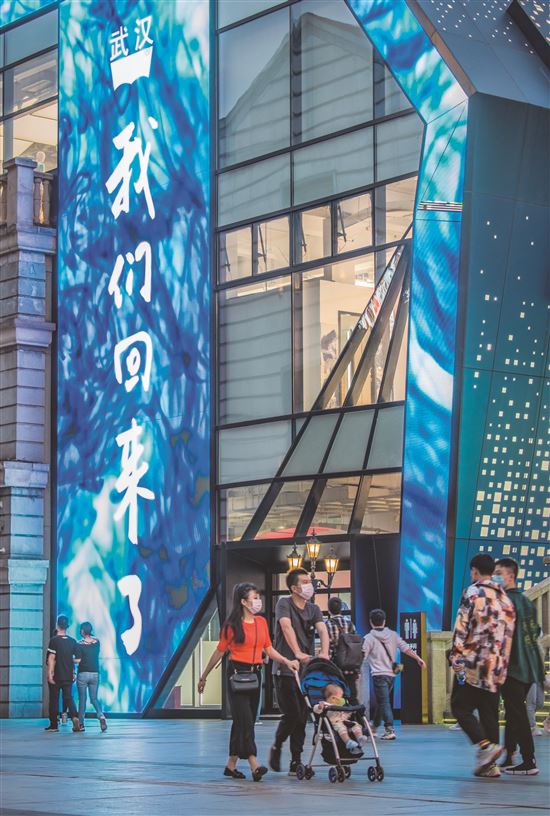 从雨雪纷飞到春暖花开,再到蝉鸣萤飞,武汉挥别寂静重现繁华。“中国担当”“共克时艰”等字样,依然在25公里长的“长江巨屏”闪动,标示着这座城市所经历的非同寻常的战“疫”时光。