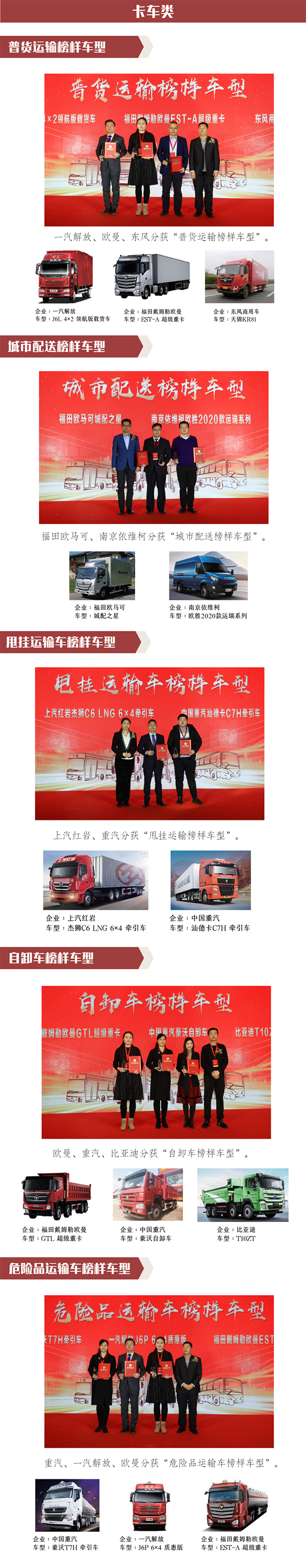 2019中国运输服务榜样车型卡车类推选结果