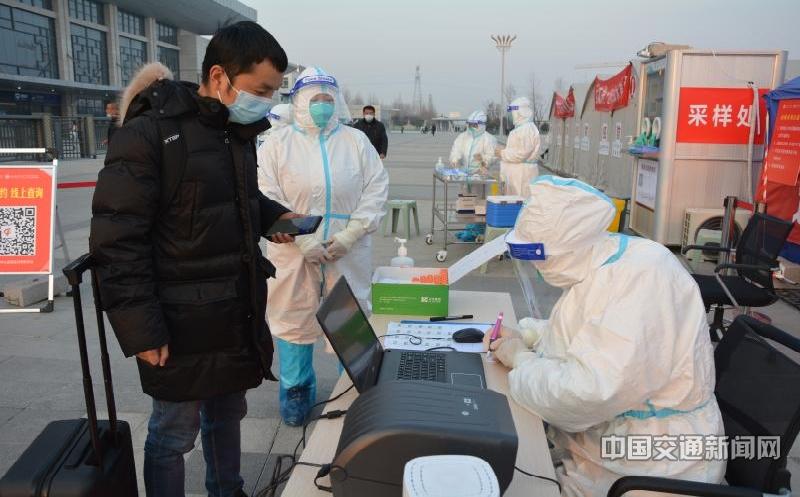 山西运城火车北站设置返运人员核酸采集点,方便返运人员第一时间进行核酸检测,受检人员完成采样后即可离站,之后可通过手机远程查询、打印检测报告。