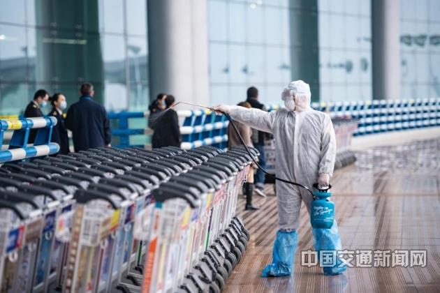 春运期间,重庆江北国际机场预计保障航班3万架次、旅客出行330万人次。江北国际机场T3航站楼内投用了4台大型光波行李消毒机,只需10余秒即可完成一件行李360度全方位消毒,供旅客免费使用。机场每天坚持对航站楼公共区域消毒4次,对旅客经常使用到的公共设施设备,如饮水机、行李推车(如图)、座椅、电梯按钮等开展持续消毒。为优化运输衔接,江北国际机场长途汽车站联合汽车运营商开通重庆至达州以及机场至泸州、广安定制客运专线,旅客可电话约车,享受“点对点”上门接送等服务。