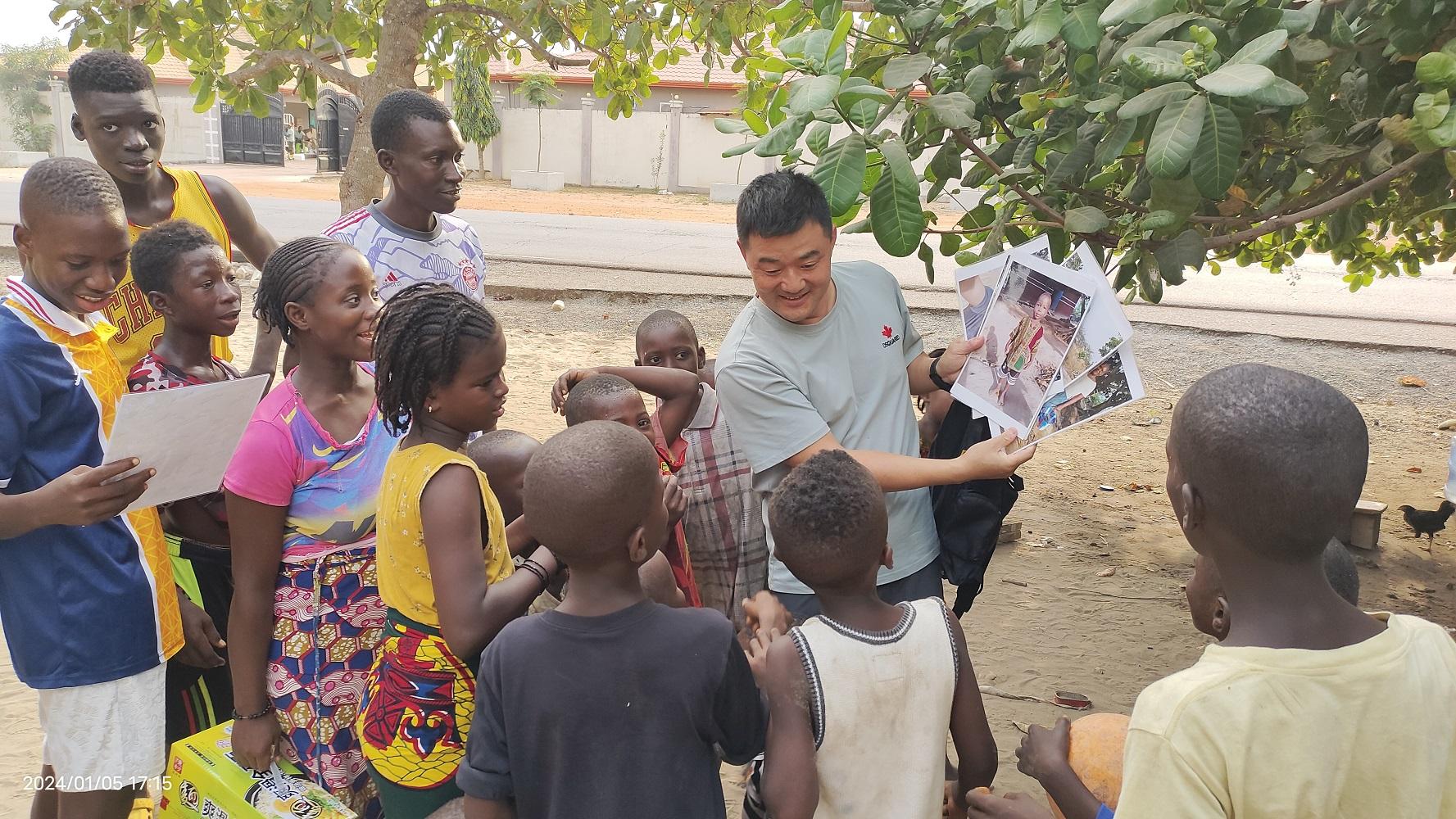 专业之外,是温暖的延伸。在几内亚博法村,他的行李箱里总有给孩子们的大白兔奶糖和文具。泥地上,孩子们追着他喊“中国爸爸”,用树枝画下他描述的中国轮船。他把画作小心收进抽屉:“这里的孩子和我的孩子一样,都该被温柔对待。”