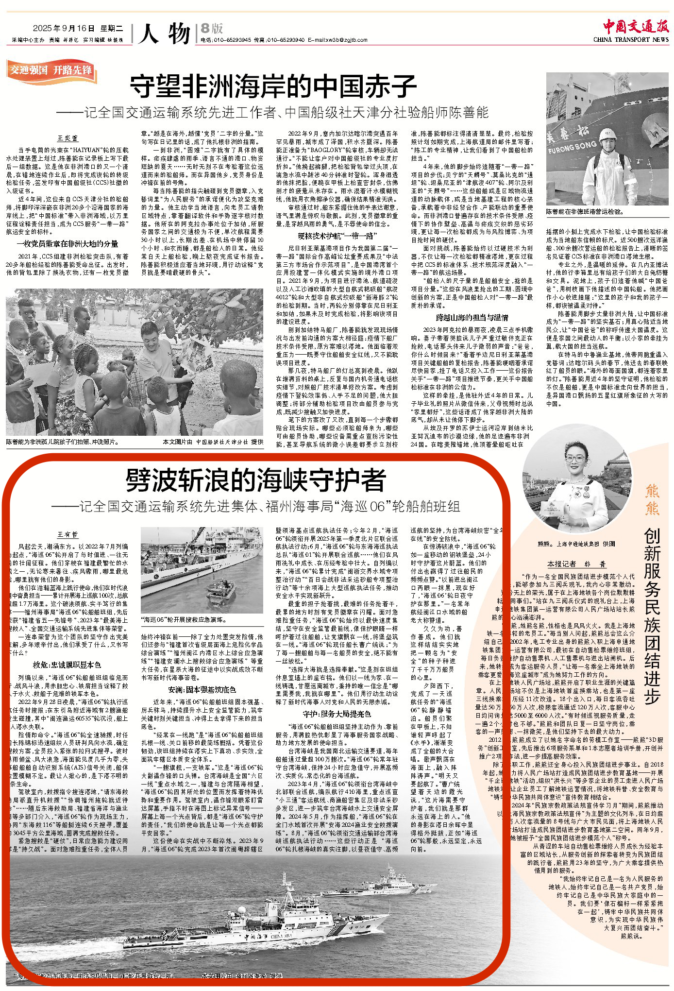 2023年4月,“海巡06”轮领衔台湾海峡中北部联合巡航,编队航行410海里,重点巡查“小三通”客运航线、商渔船密集区及非法采砂多发区,进一步筑牢台湾海峡水上交通安全屏障。2024年5月,作为指挥船,“海巡06”轮在金门水域首次开展“安海2024渔业安全救援演练”。8月,“海巡06”轮领衔交通运输部台湾海峡巡航执法行动……这些行动正是“海巡06”轮扎根海峡的真实注脚,以昼夜值守、高频巡航的坚持,为台湾海峡织密“全年在线”的安全防线。