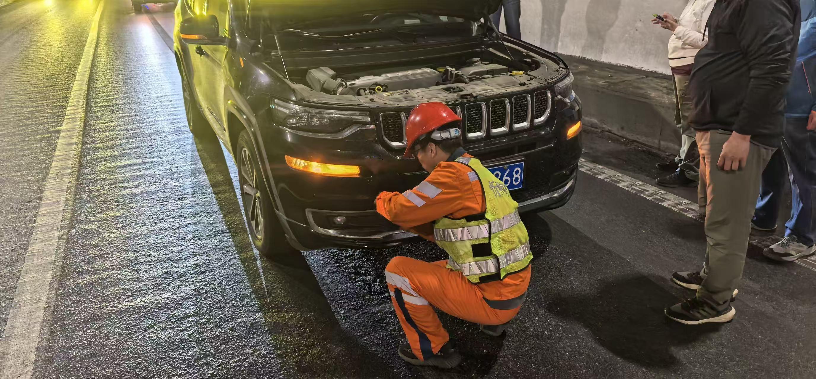 假期接近尾声,返程车流迎来高峰。曹虎隧道管理站监控员在视频巡查时,敏锐地发现甘钦山隧道内一行车道上,有辆小车异常停靠。隧道内车辆川流不息,一旦发生追尾,后果不堪设想。监控员立即上报,启动应急响应,应急队伍以最快速度抵达现场。经与车主沟通得知,车辆突发故障,无法前行。应急队员迅速行动:安全警示区规范设置,为救援划出“安全圈”;专人引导后方车辆,避免交通拥堵;熟练安装拖车钩,做好救援准备……很快,故障车被安全拖离,隧道通行秩序恢复如常。
