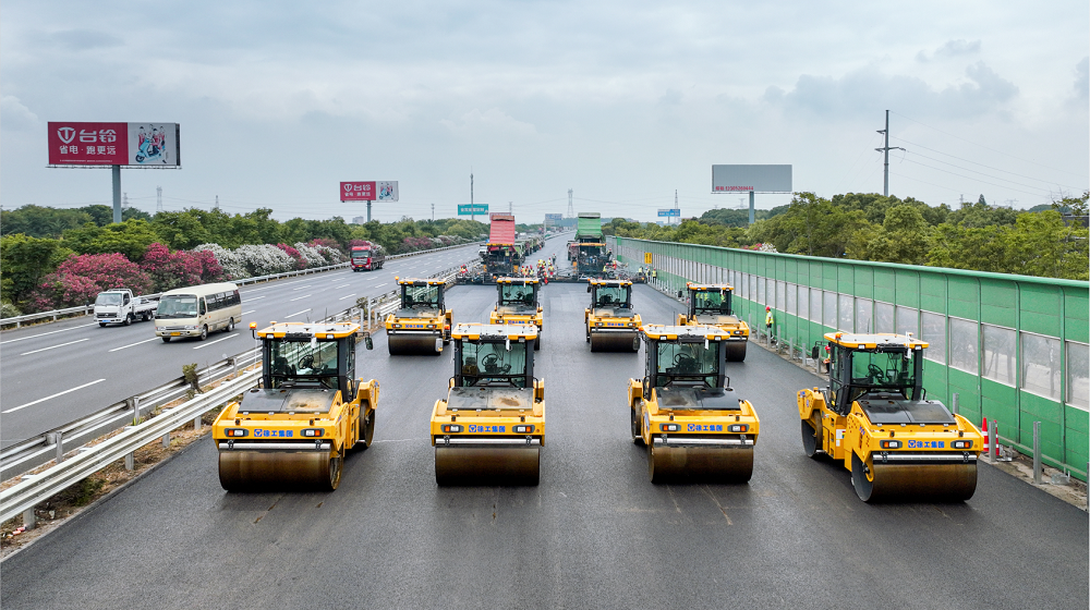 在沈海高速公路江苏段集中养护工程现场,2台大型摊铺机与7台无人压路机组成的智能机群方阵正进行潮汐式整齐摊铺碾压。“我们采用多工序集约协同施工,原本需要上百天的作业,现在30天左右就能完成。”集中养护施工负责人介绍。