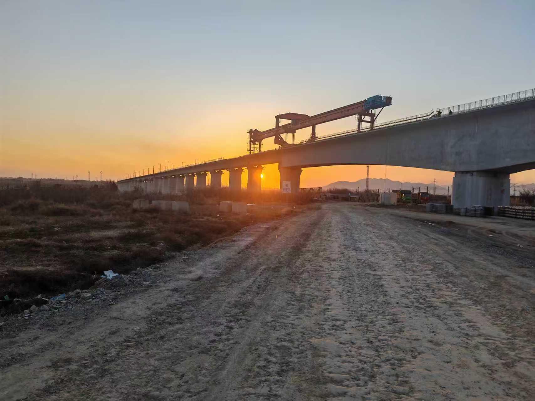 “架梁过程中,项目部累计投入两套运架设备,采用‘双机双向’和‘两班倒’连续作业模式进行架梁作业,同时应用架桥机云平台信息化系统,对箱梁运输、架梁、精准下落全流程动态监测、智能调度与风险预警,保障箱梁架设安全高效推进。”中铁三局项目部现场架梁负责人孙冬强介绍。
