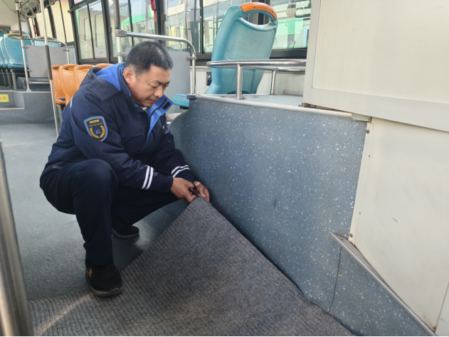 948路串联多个居民社区且途经集市,老年乘客超过半数。驾驶员张晓峰留意到老年乘客上下车偏慢、车厢易滑、座椅偏硬等问题,通过在车厢关键区域铺设高摩擦防滑地垫,更换保暖柔软的座椅垫,逐一检修扶手、爱心专座标识等设施,让线路既安全又暖心。“以前雨雪天上车总提心吊胆,怕脚下打滑,坐久了腰也酸。现在铺了防滑地垫,座椅也变软了,真是太贴心了!”经常乘坐948路赶集的李阿姨竖起大拇指。