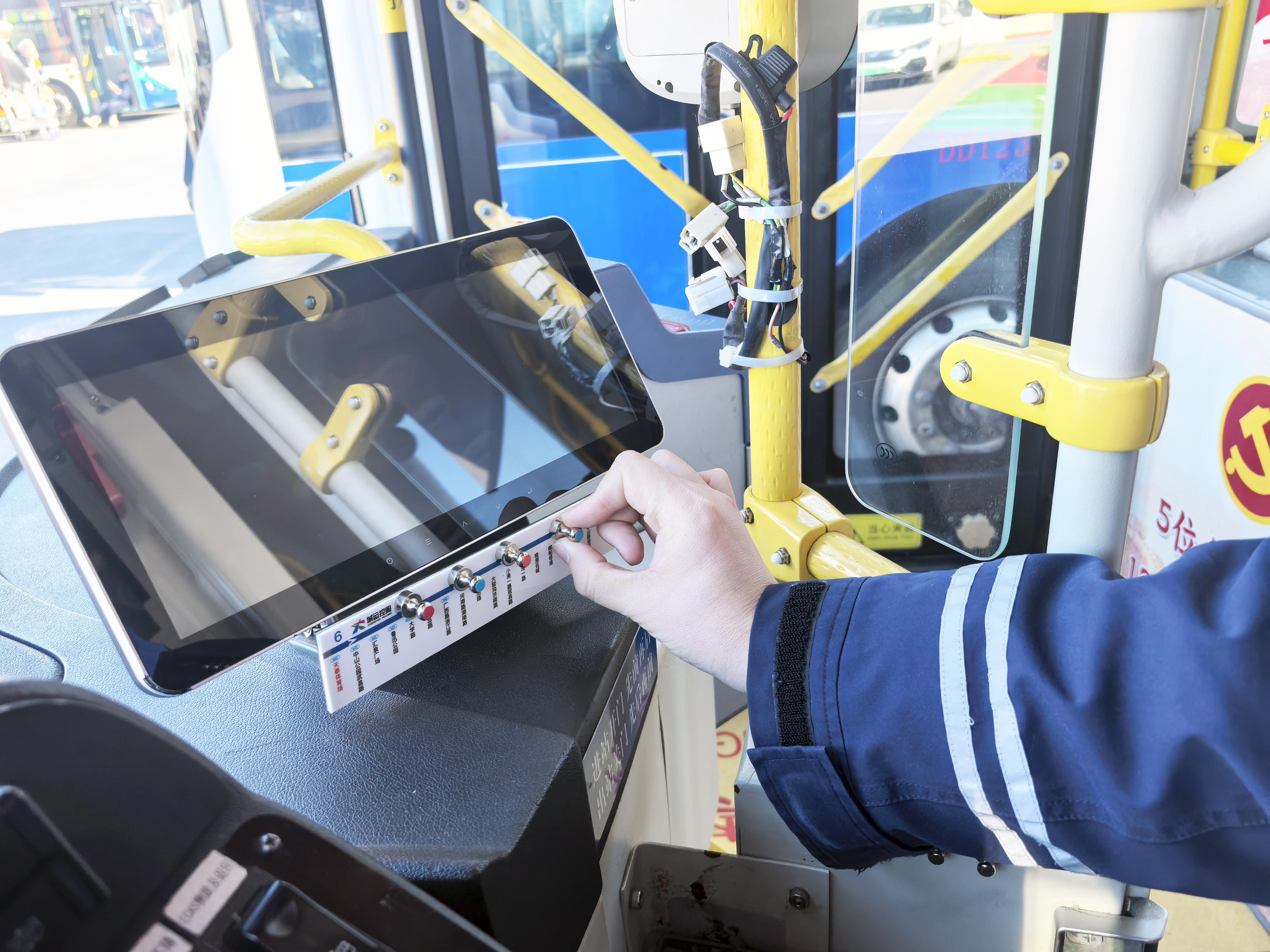 青岛公交6路线上,实习驾驶员孙玉鑫跟随师傅周群松学习线路运营。车辆行至青岛路站,一位老人上车询问:“师傅,去动物园正门怎么走?”周群松迅速查询实时信息后,建议其在“中山公园武昌路”站下车,步行50米换乘15路。话音落下,他转身从驾驶室旁取下一枚红色磁吸扣,轻轻吸附在线路牌的对应站名旁。这一动作,替代了以往手写便签的匆忙,成为车辆运行中一个安静而坚定的提醒。