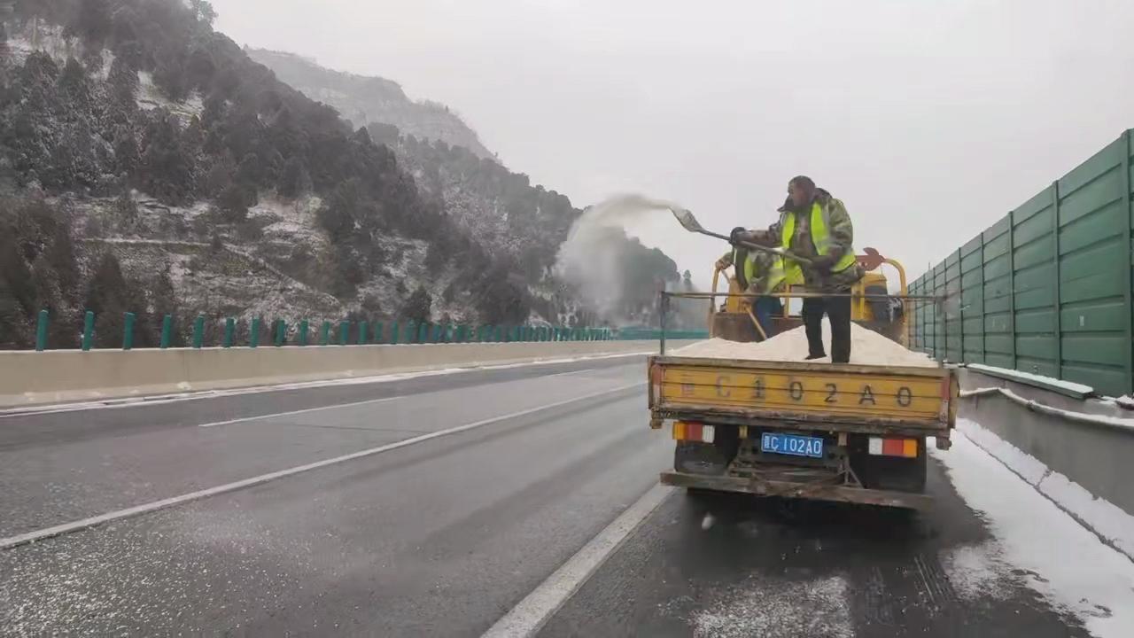 降雪前,工区已提前储备融雪剂,检修调试除雪车、撒布机等设备,明确人员分工与责任路段,做好充分准备。1月17日下午雪情发生后,巡查队伍持续进行路面巡视,实时反馈雪情冰情。随着降雪强度增大,人工与机械协同配合,全面开展除雪作业。截至目前,工区累计投入人工撒布融雪剂6吨,撒布机作业54吨,有效遏制了路面积雪结冰,保障了辖区道路基本通行条件。下一步,工区将根据雪情变化动态调整作业方案,持续加大巡查与除冰力度,全力保障公路安全畅通。