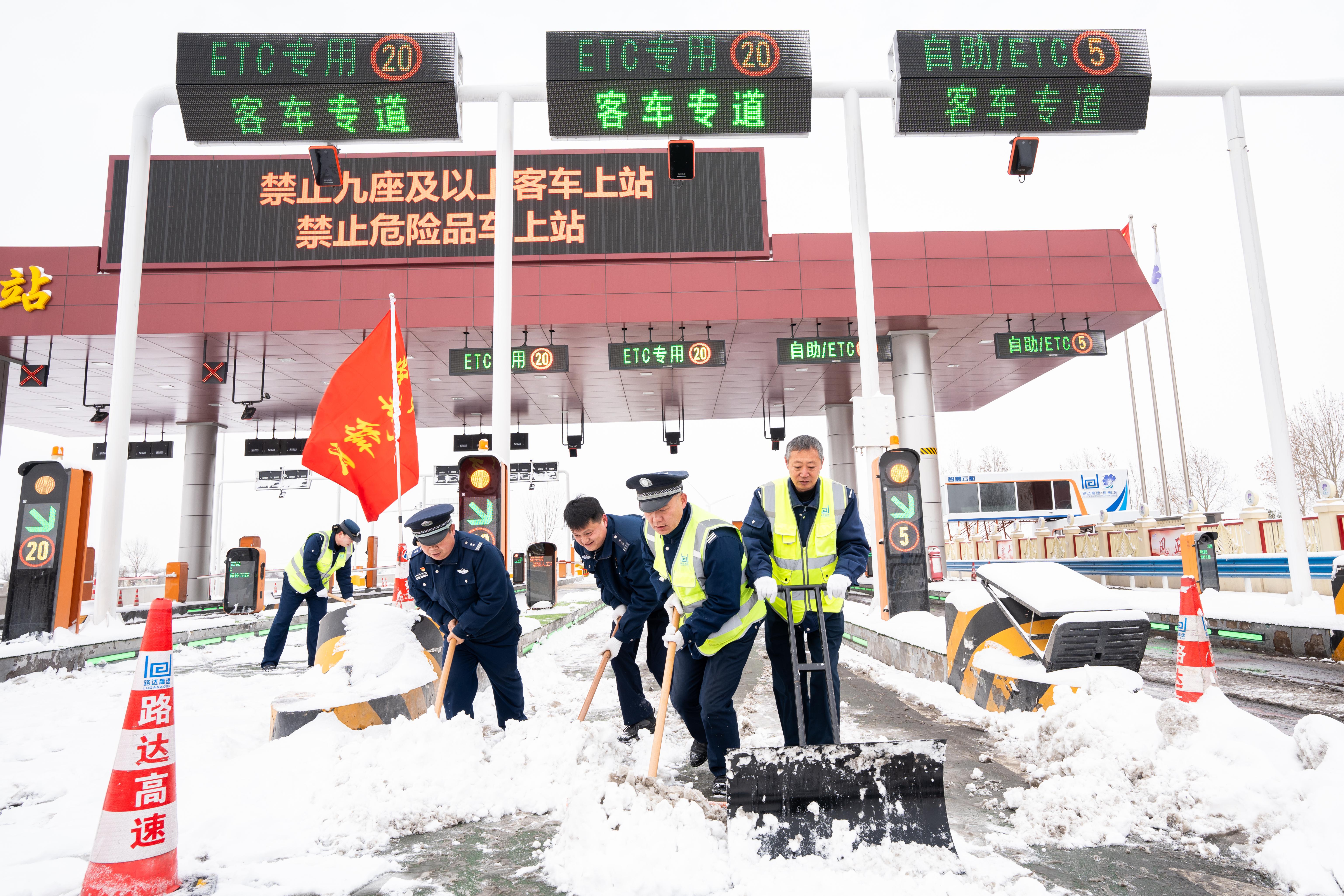 风雪无情人有情,暖心服务不打烊。公司所辖各收费站闻令而动,即时启动应急保畅预案,党员干部带头成立先锋突击队,带领全体职工迅速投入战斗,手持除雪工具对收费车道、广场开展除雪作业,精准布撒融雪剂,确保收费通道畅通无阻。同时,在收费站设立便民服务台,为滞留司乘人员免费提供热水、简餐、应急药品等暖心物资,耐心解答出行咨询,用贴心的服务在风雪中为司乘驱散寒意,彰显“焦桐花”服务品牌的人文关怀与责任担当。截止目前三站共发放饮用水和速食品百余份,援助司乘65人次。