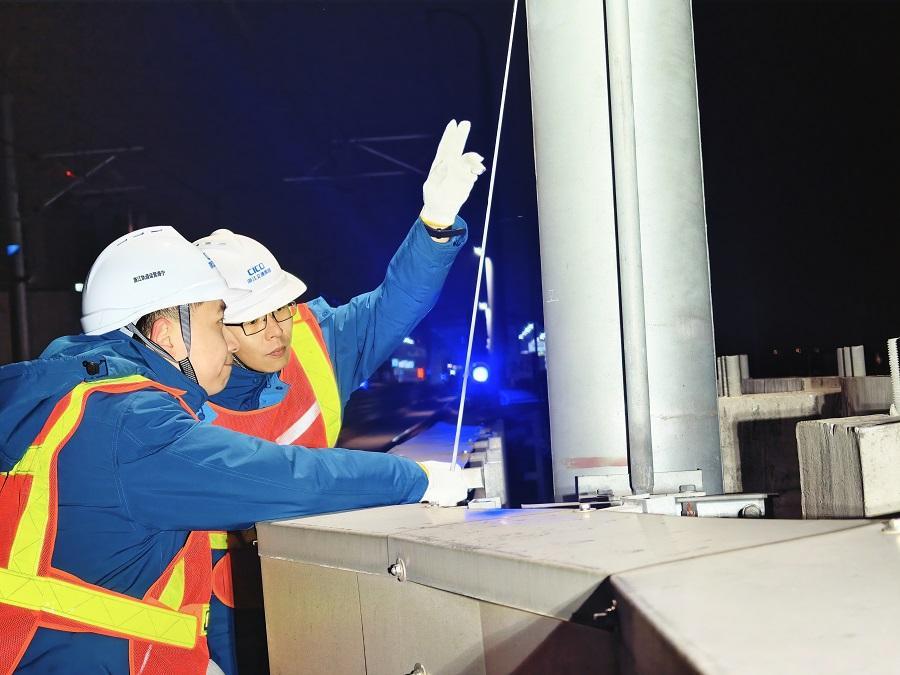 寒夜的高架上寒风刺骨,检修人员的手指冻得僵硬发麻,工装被寒气浸透。经过近4小时的奋战,团队圆满完成14组棘轮补偿装置的彻底检查与评估,对大小轮圈数、张力调节等关键问题实现闭环整治,确保设备符合冬季运行要求。“张力正常,转动顺畅,参数全部达标!”吴兆文收回游标卡尺,声音在寂静的寒夜中格外清晰。