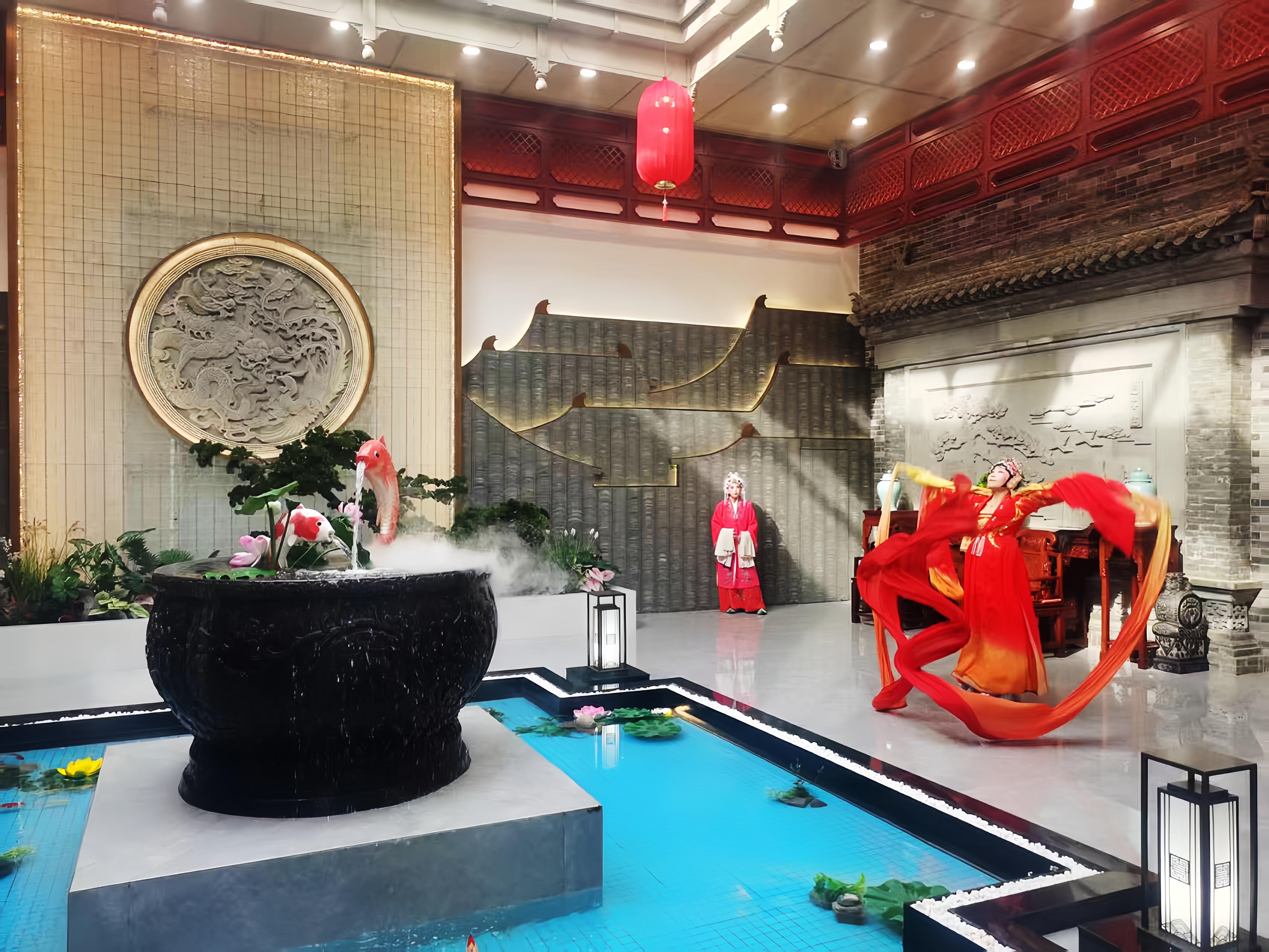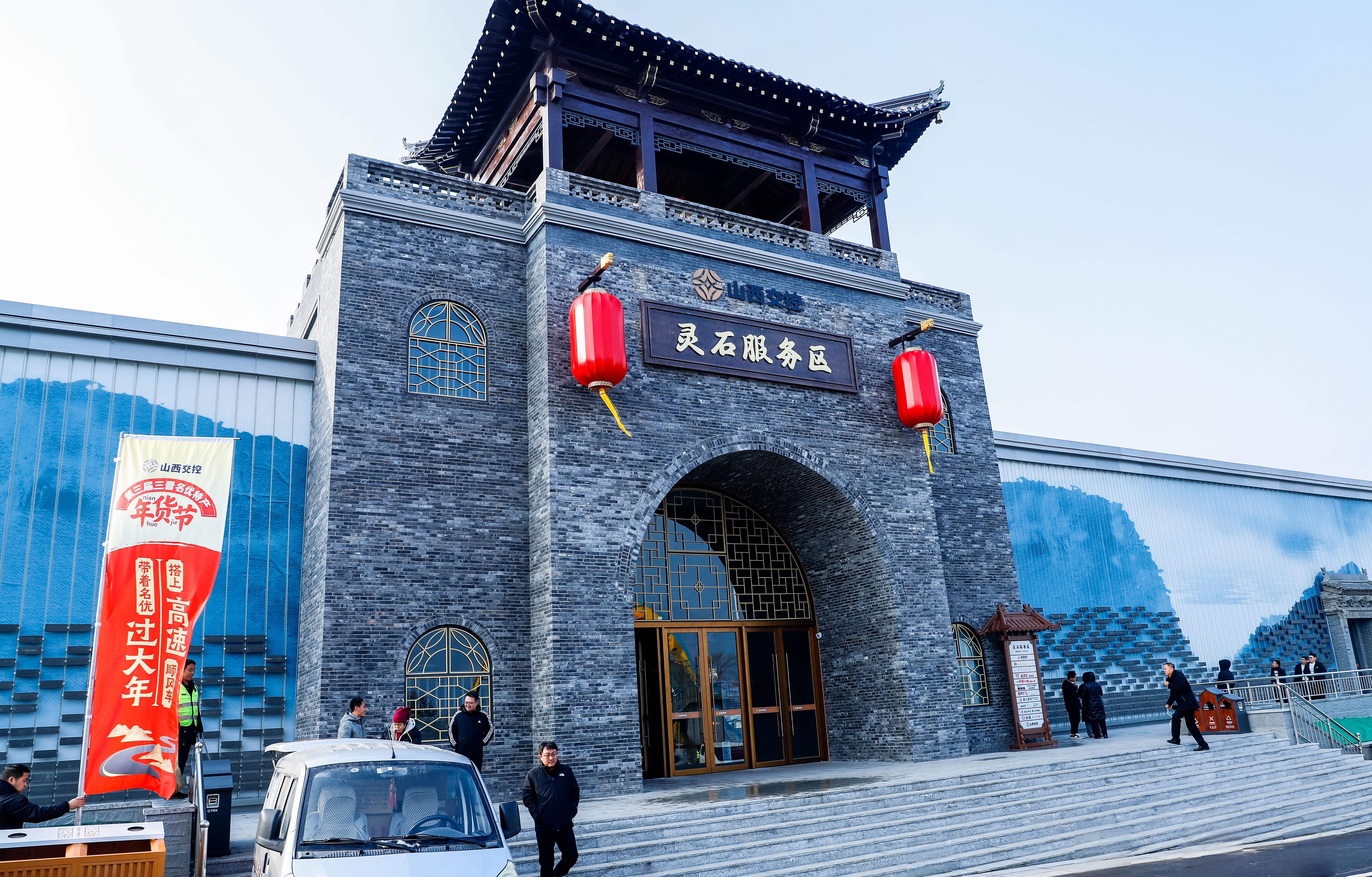进入服务区,首先映入眼帘的是以山西晋中市区域的王家大院为蓝本的建筑群,过往旅客连连惊呼“太美啦”,不少人驻足拍照。步入大厅,最引人注目的是“四水归堂”的天井中庭,映照中央的圆形砖雕“龙凤呈祥”,两侧高低错落的大院建筑画,让人仿佛置于晋商大院。