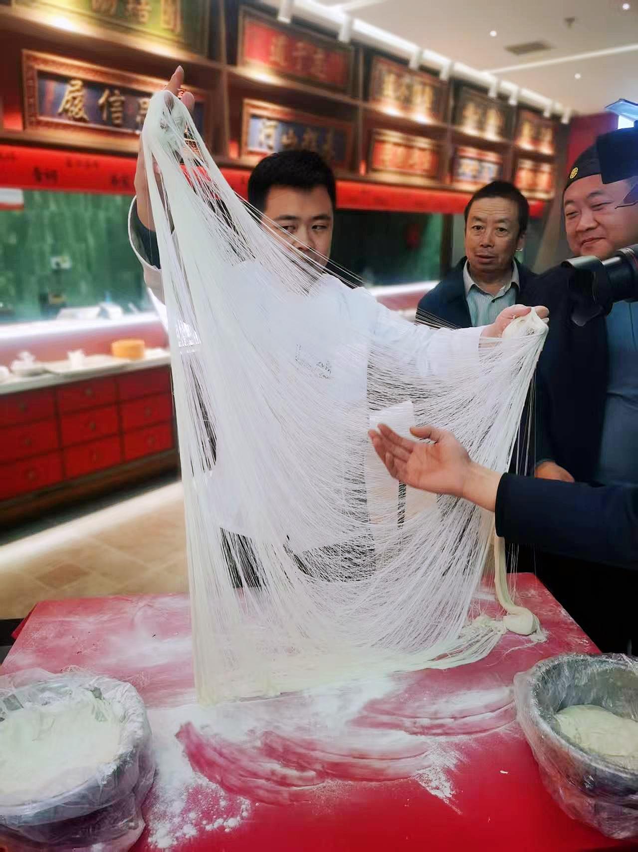 在桃花掩映的档口前,非遗传承人现场展示“刀不离面,面不离刀”的绝活,让人在匆匆旅途中也能尝到正宗的山西滋味。非遗晋剧惊艳登场,将现场气氛推向高潮。山西晋中市区域的灵石非遗传承人蔺俊鹏的拓印技艺现场展演,游客们热情高涨,纷纷参与到拓印的制作过程中。