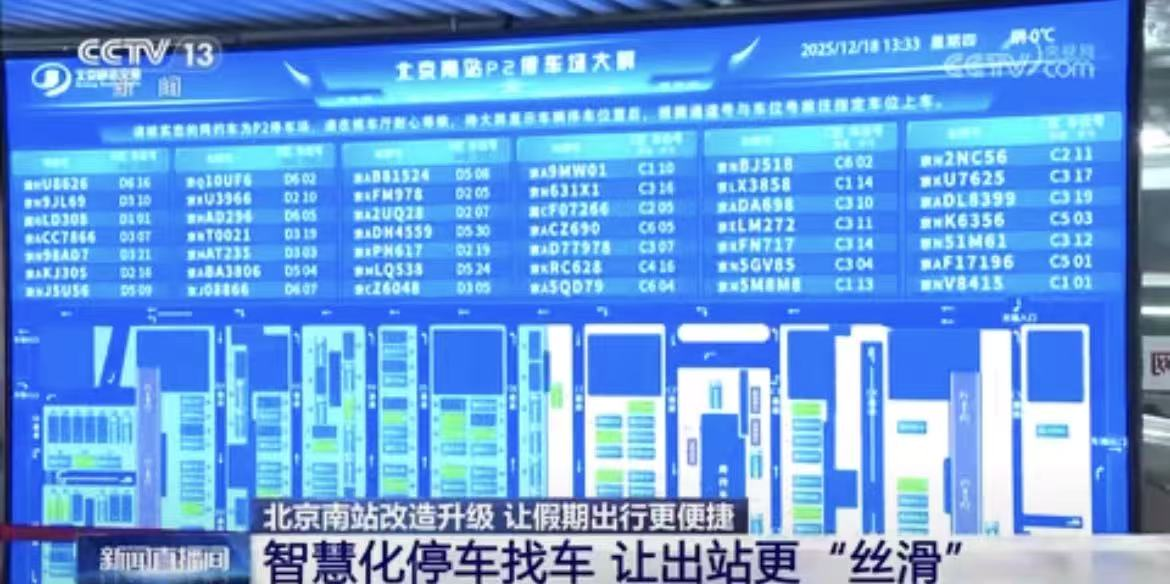 实现车位数据实时展示,在北京南站P1、P2地下停车场,该系统同样展现了强大的对接能力。通过与主流出行平台数据交互,实现了网约车入位实时展示和引导。网约车车辆停入车位后,旅客则能在候车厅大屏扫码寻车,实现“车落位、人找车”的高效模式。
