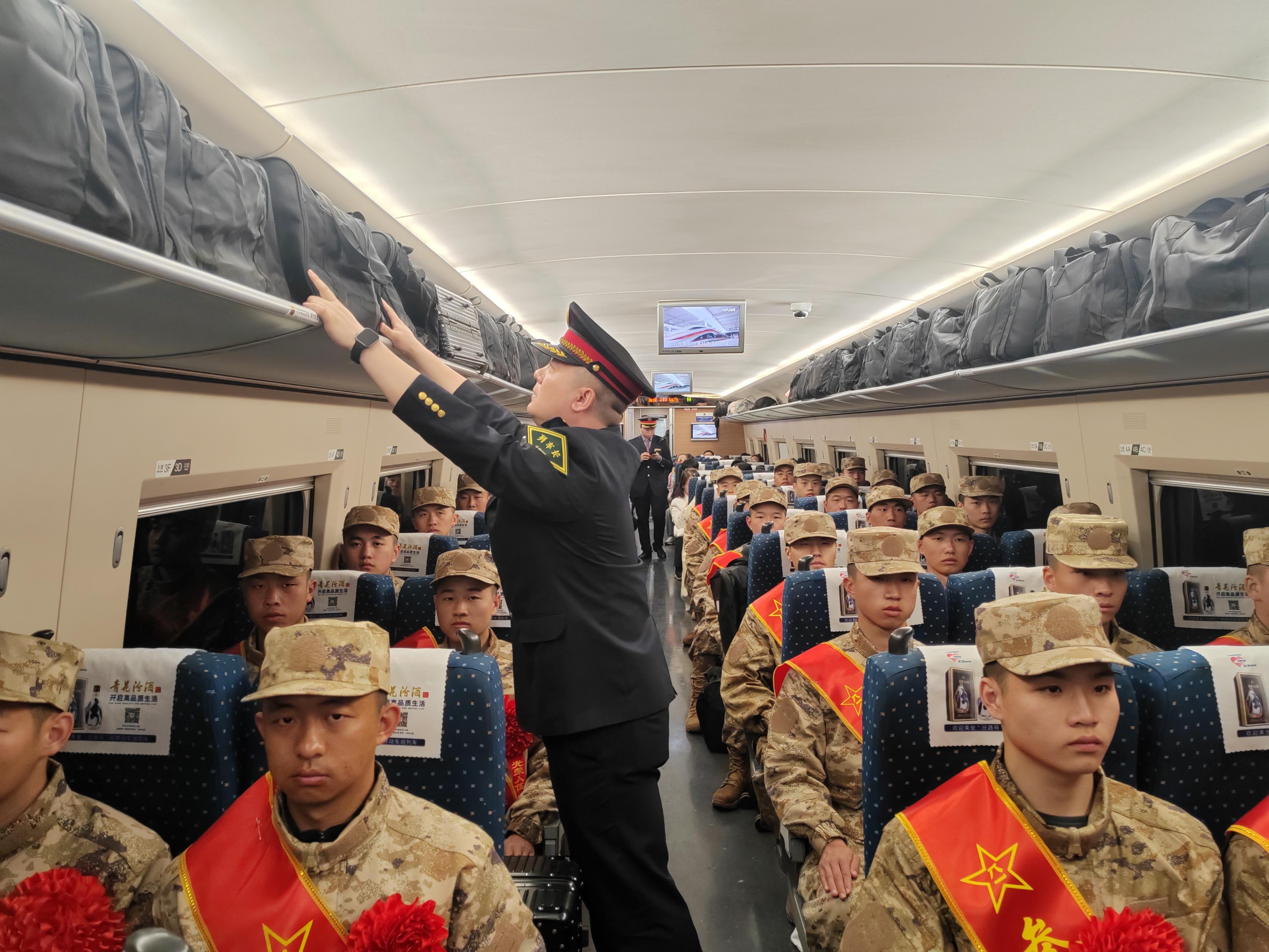 与此同时,太原客运段对列车乘务人员开展专项业务培训,提升服务质量和应急处置能力。各趟列车乘务人员主动协助新兵摆放行李,讲解列车设备使用方法,加密供水频次,用点滴关怀让新兵感受暖心旅途。