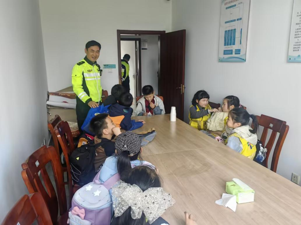 为保障师生安全,执法人员迅速将师生安置在会议室休息,耐心与学生沟通安抚情绪,讲解交通安全知识。同时,两部门联动协作,由交警快速联系合规驳运车辆,确保25名师生全部安全有序完成驳运,顺利前往目的地。