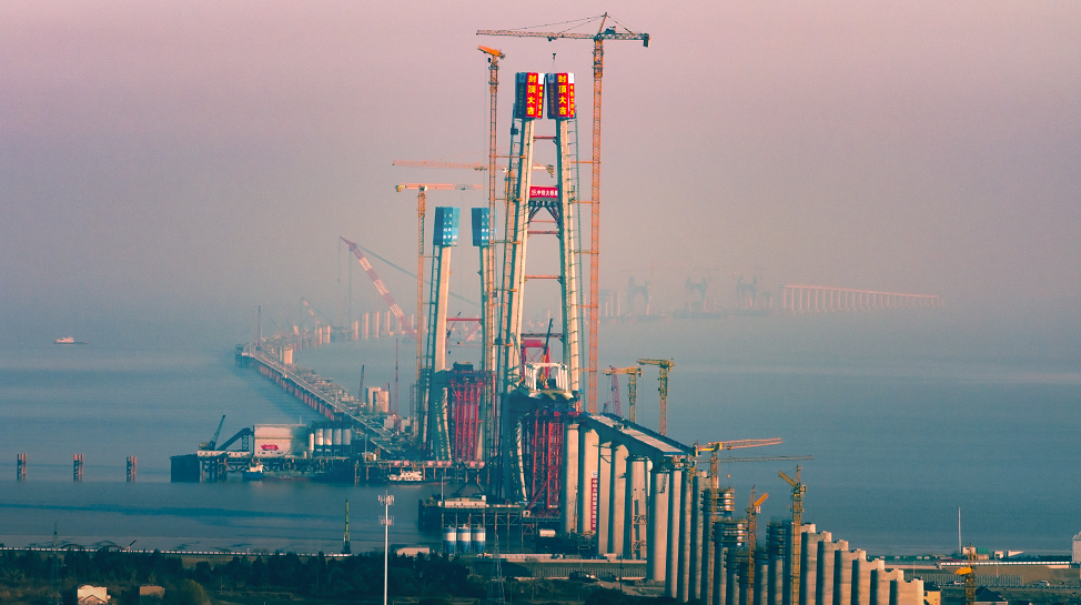 辽宁大连长海大桥工程主墩钢平台顺利实现贯通